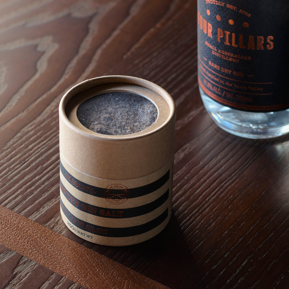 Four Pillars have taken their Spent Rare Dry Gin botanicals, dehydrated them and blended it with Olsson’s Marine Mineral Grey Salt. The Marine Mineral Grey Salt, Australia’s first “selgris”, comes from the ocean and tastes just like the sea. This mixed with Four Pillars nine botanicals makes for a stunning salt perfect for seasoning a roast chicken or pork loin, roasted vegetables (especially spuds), or sprinkled on stir-fried greens, curing fish like salmon or kingfish and makes an amazing salted caramel to pour over vanilla ice cream.